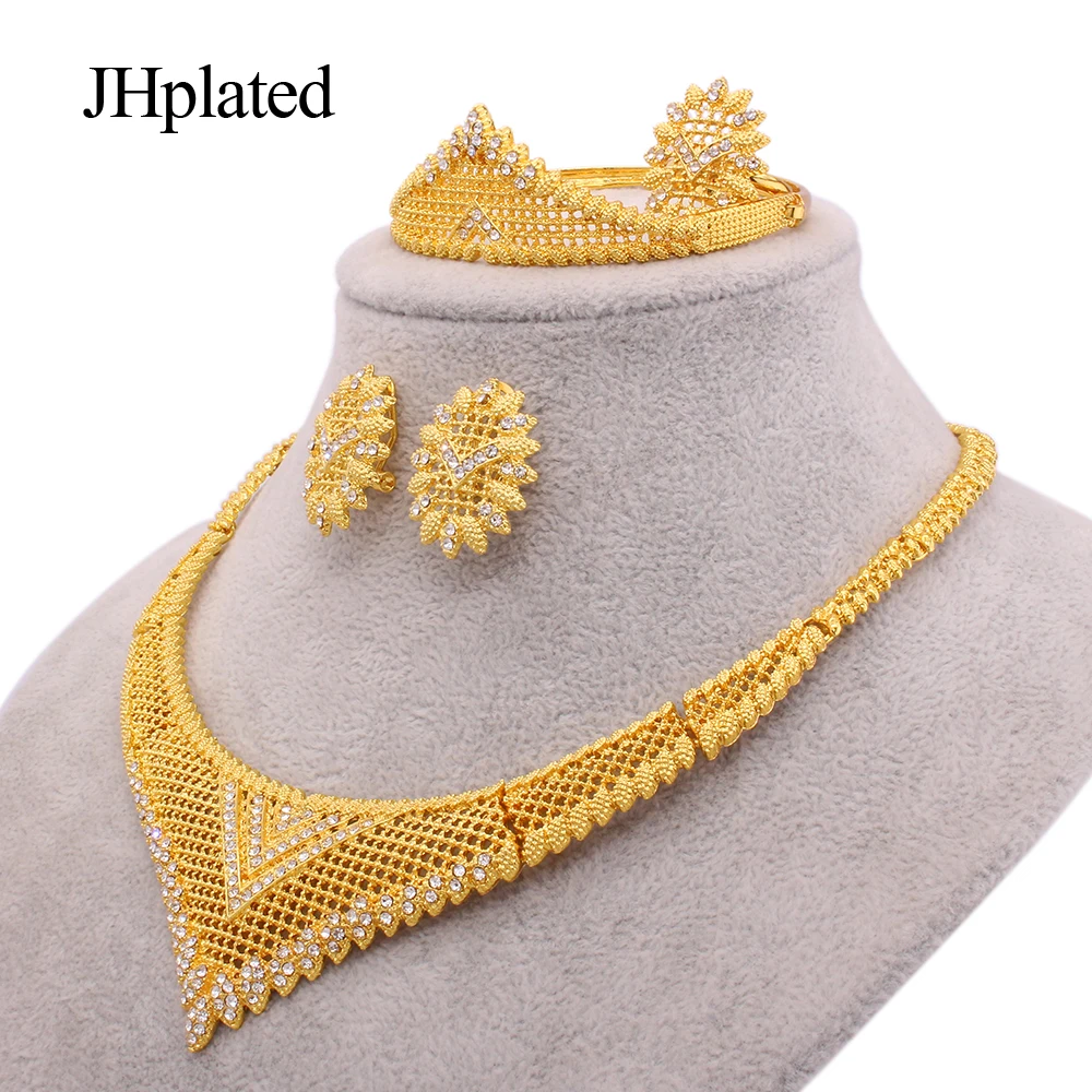 African 24K Gold plated wedding jewelry set gifts necklace earrings pendants bracelet ring Ornament jewellery set for women